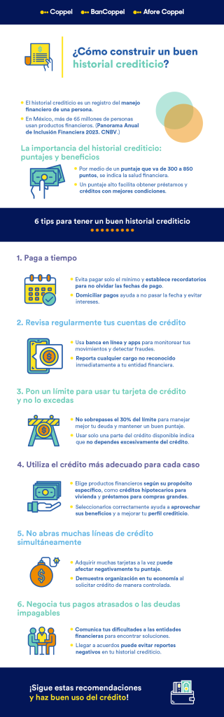 Y si así lo deseas, podrás explorar las diferentes opciones en productos crediticios que ofrecen para ti Bancoppel y Crédito Coppel. Alcanza tus metas con múltiples posibilidades de pago disponibles para que sigas fortaleciendo tu historial de crédito.
